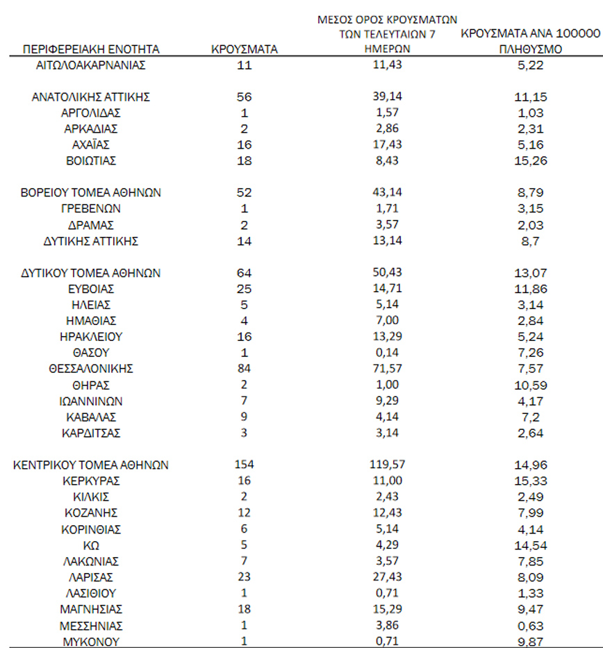 - 154 κρούσματα στην Π.Ε. Κεντρικού Τομέα Αθηνών