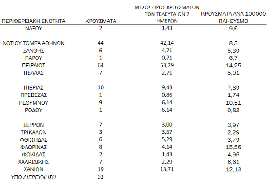 - 56 κρούσματα στην Π.Ε. Ανατολικής Αττικής