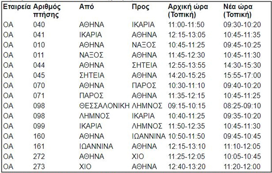 Λόγω της 4ωρης στάσης εργασίας που έχει κηρύξει για την Πέμπτη (10/06) ο Πανελλήνιος Σύλλογος Πτυχιούχων Τηλεπικοινωνιακών Υπαλλήλων (FISO) της ΥΠΑ, από τις 11:00 έως τις 15:00, καθώς και της Ομοσπονδίας Συλλόγων Υπηρεσίας Πολιτικής Αεροπορίας (ΟΣΥΠΑ), από τις 11:30 έως τις 15:30, η Olympic Air ενημερώνει το επιβατικό κοινό ότι είναι υποχρεωμένη να προβεί σε τροποποιήσεις πτήσεων.