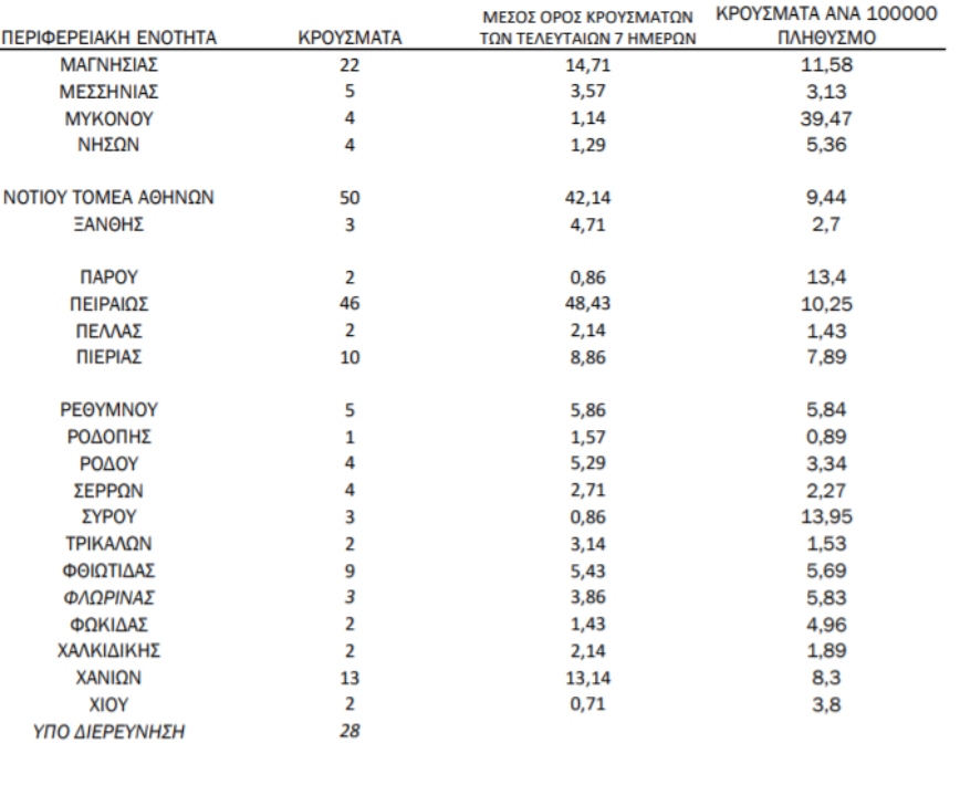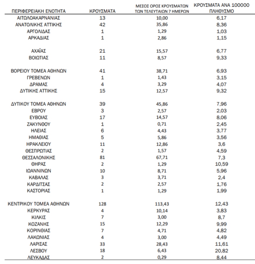Ακολουθούν όλες οι περιοχές στις οποίες εντοπίστηκαν τα νέα κρούσματα κορονοϊού