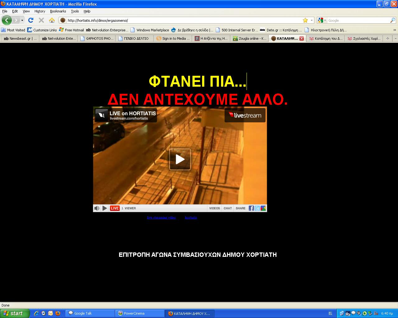 «Δεν αντέχουμε άλλο» φωνάζουν οι εργαζόμενοι οι οποίοι στις 8 θα καταλάβουν το δημαρχείο, ενώ όσοι επιχειρούν να μπουν στην ιστοσελίδα www.hortiatis.info θα δουν τα ακόλουθα: