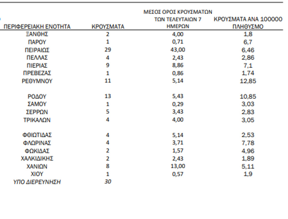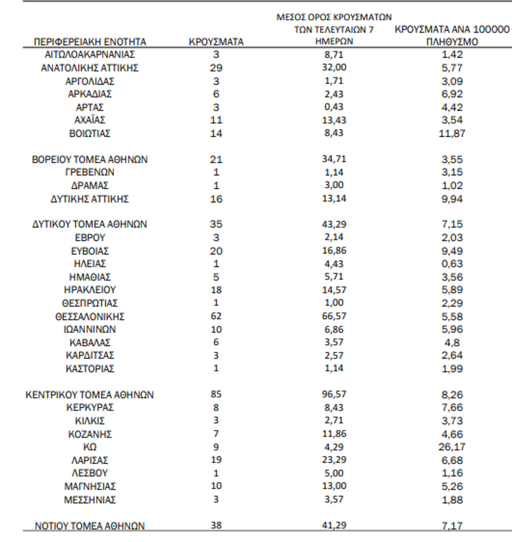 Αναλυτικότερα τα κρούσματα στις περιφερειακές ενότητες που ανήκουν στην Αττική: