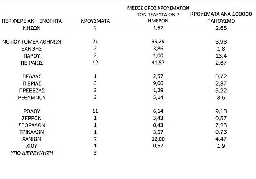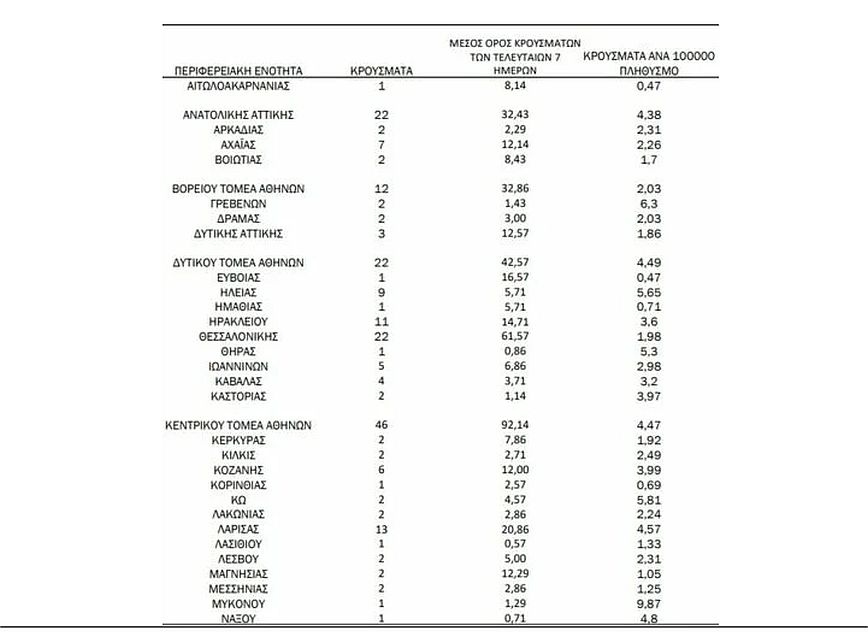 Δείτε αναλυτικά την κατανομή των κρουσμάτων ανά την χώρα, σύμφωνα με τα στοιχεία του ΕΟΔΥ: