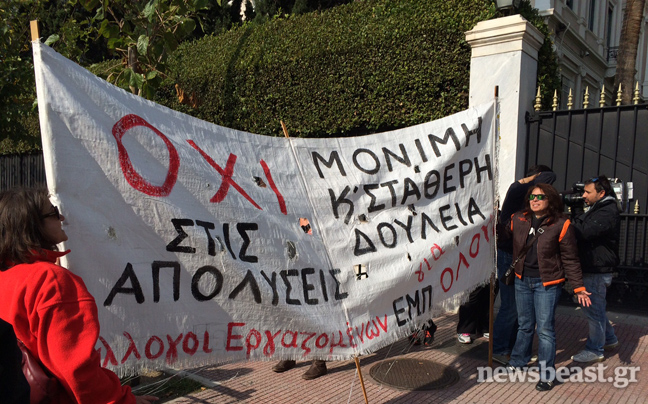 Έξω από το υπουργείο Διοικητικής Μεταρρύθμισης έφτασαν με πορεία από τα Προπύλαια, όπου νωρίτερα πραγματοποίησαν συγκέντρωση διαμαρτυρίας, οι διοικητικοί υπάλληλοι των ΑΕΙ. Οι εργαζόμενοι διαμαρτύρονται καθώς λήγει σύντομα η περίοδος διαθεσιμότητας συναδέλφων τους.