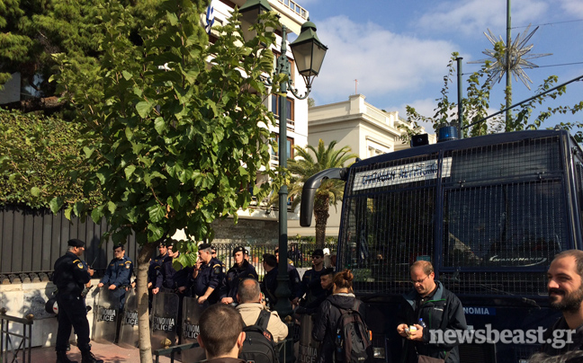 Η κυκλοφορία στη Βασ. Σοφίας διεξάγεται χωρίς να παρατηρείται ουσιαστικό πρόβλημα. Οι διαδηλωτές έχουν κλείσει τη μία λωρίδα του δρόμου.