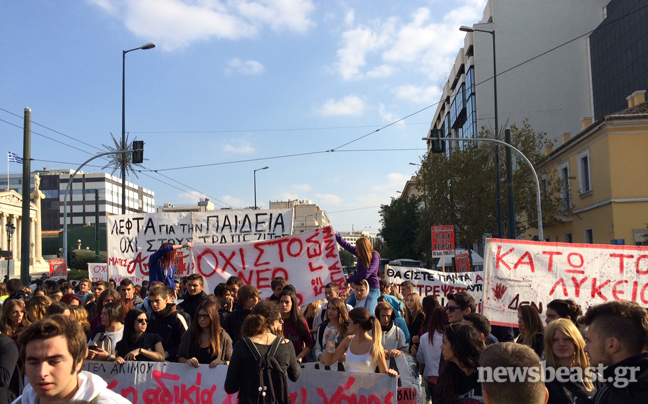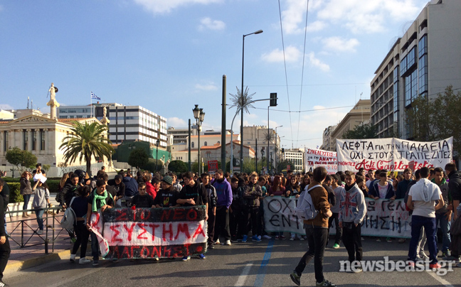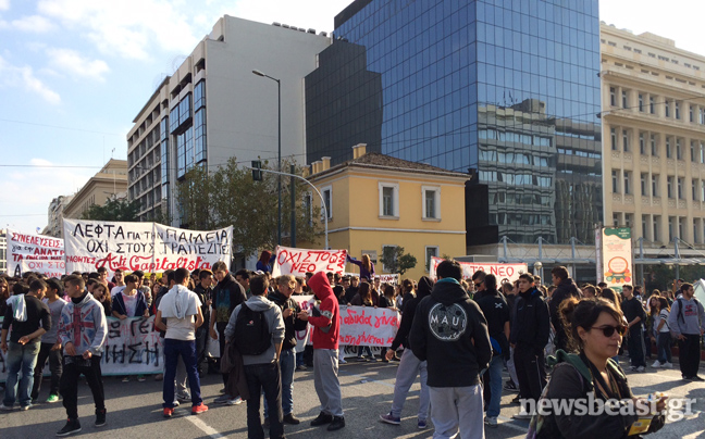 Πορεία από τα Προπύλαια προς την πλατεία Συντάγματος πραγματοποιούν αυτή την ώρα μαθητές Λυκείου, που διαμαρτύρονται για την Τράπεζα Θεμάτων, το σύστημα των εξετάσεων στο Λύκειο, αλλά και τη γενικότερη κατάσταση που επικρατεί στην Παιδεία.