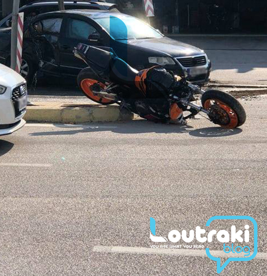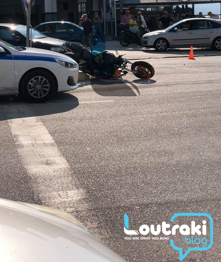 Σύμφωνα με το loutrakiblog.gr το τροχαίο σημειώθηκε σήμερα το απόγευμα στο Λουτράκι, επί της λεωφόρου Αθηνών, στο ύψος του βενζινάδικου της ΑVIN. Ο 19χρονος νεαρός μοτοσικλετιστής καρφώθηκε σε ΙΧ όχημα.