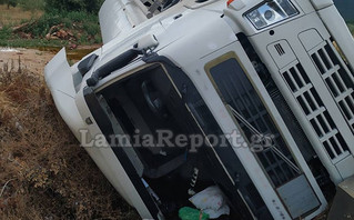 Το μεγάλο όχημα ήταν φορτωμένο με βαμβακέλαιο και κάτω από ποιες συνθήκες εξετράπη της πορείας του και ανετράπη στα χωράφια. Αποτέλεσμα ήταν να τραυματιστεί ελαφρά ο οδηγός και η συνοδηγός του οχήματος, ενώ από το βυτίο έπεσε το βαμβακέλαιο στα χωράφια.