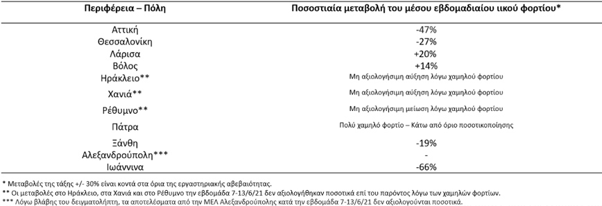 Παρακάτω δίνονται περισσότερες διευκρινίσεις σχετικά με τα αποτελέσματα της εβδομάδας 7-13 Ιουνίου 2021, ανά περιοχή: