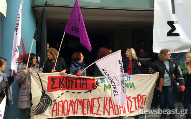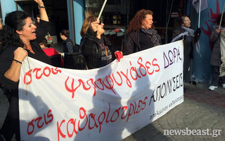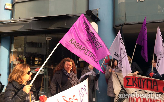Συνεχίζουν τον αγώνα τους οι απολυμένες καθαρίστριες του υπουργείου Οικονομικών, με συμβολικό αποκλεισμό σήμερα στην εφορία της Κυψέλης.
