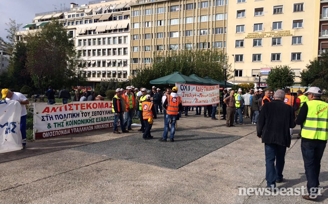 Συγκέντρωση διαμαρτυρίας στην πλατεία Κλαυθμώνος πραγματοποιούν αυτή την ώρα εργαζόμενοι στα λιμάνια, οι οποίο έχουν κηρύξει για σήμερα 24ωρη πανλιμενική απεργία αντιδρώντας στην ιδιωτικοποίηση των λιμανιών.