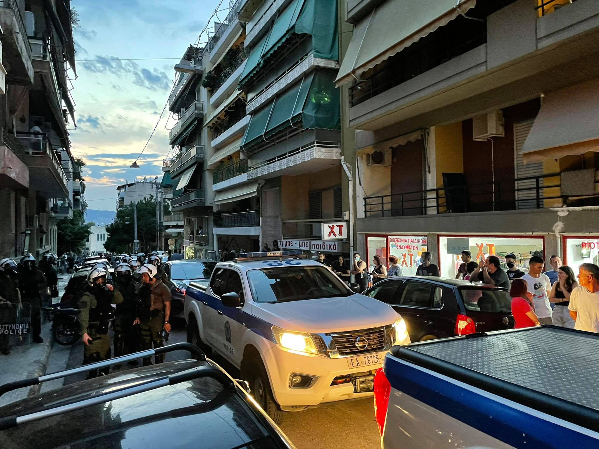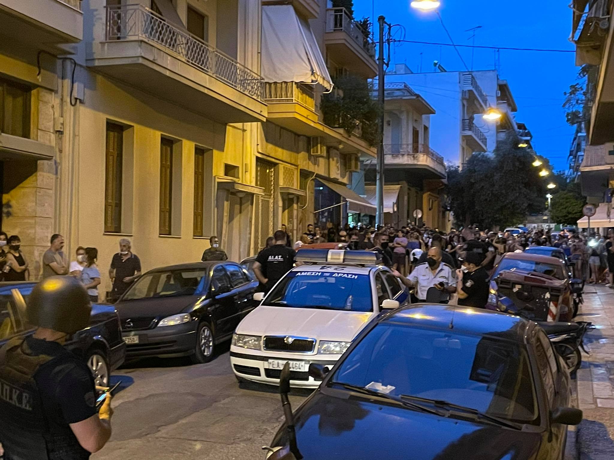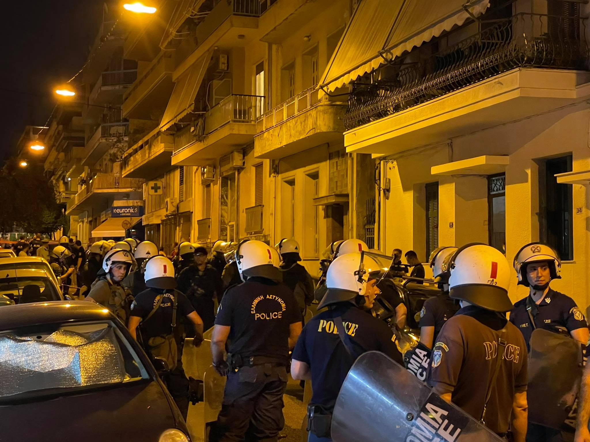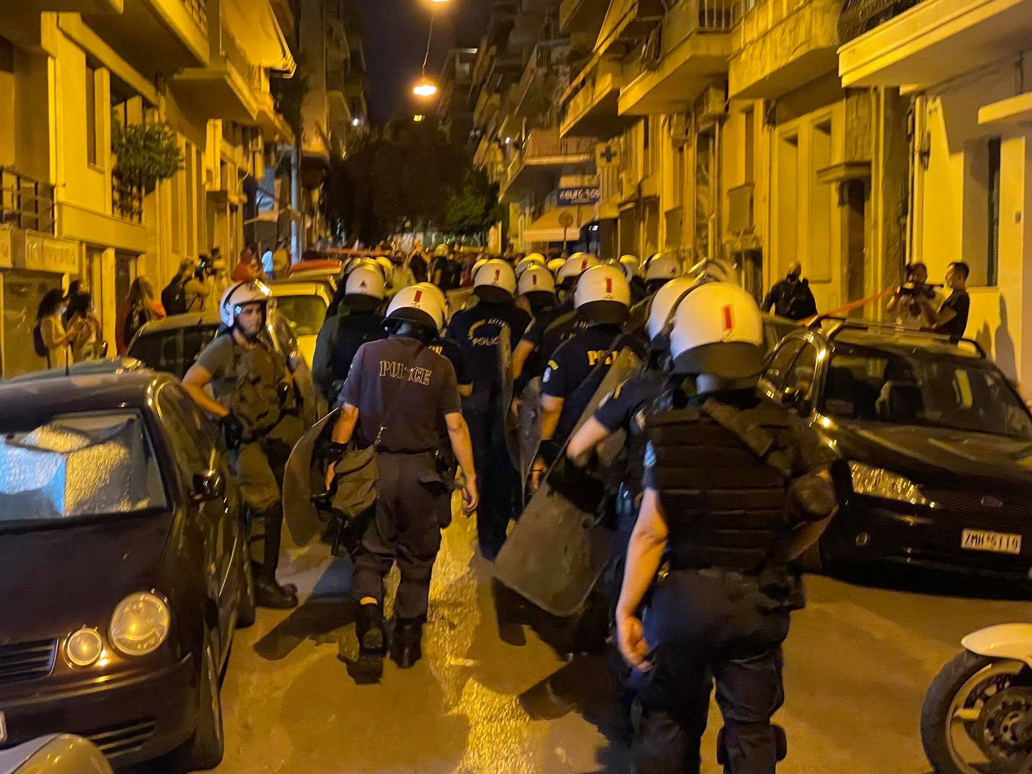 Οι αστυνομικοί που έφτασαν στο σημείο περίμεναν να εισβάλλουν στο σπίτι ενώ την ίδια στιγμή έσπευσαν στην περιοχή και 100 περίπου άτομα του αντιεξουσιαστικού χώρου οι οποίοι φώναζαν συνθήματα όπως καμιά γυναίκα μόνη.