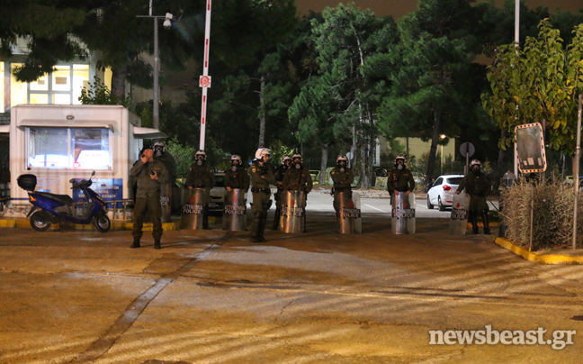 Στο σημείο βρίσκονται και άνδρες των ΜΑΤ.