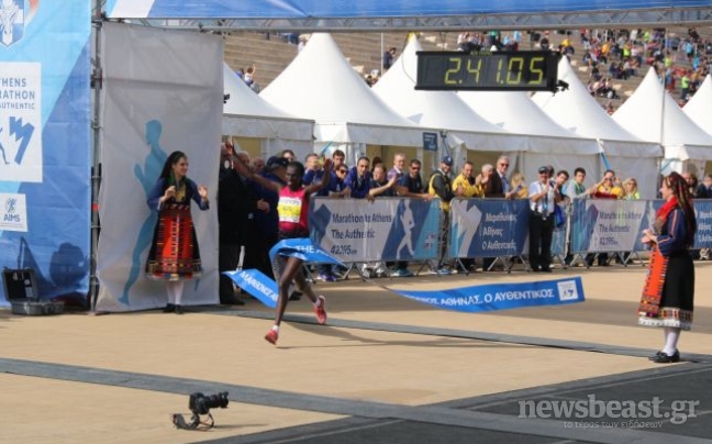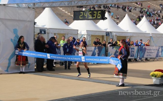 Η Ναόμι Μάγιο είναι η γυναίκα που τερμάτισε πρώτη στον φετινό Μαραθώνιο με χρόνο 2.41.05” και ακολούθησε η Νάνσι Ρότιχ με χρόνο 2.41.28”. Και οι δυο είναι από την Κένυα.
