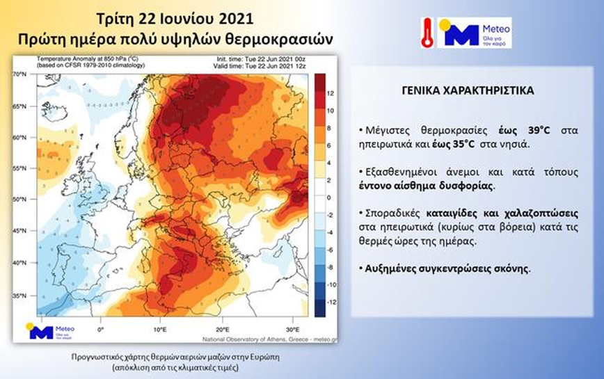 Παράλληλα, τονίζεται ότι, λόγω των αναμενόμενων υψηλών θερμοκρασιών, θα πρέπει να τηρούνται τα απαραίτητα μέτρα προφύλαξης.