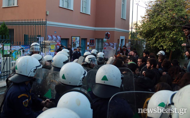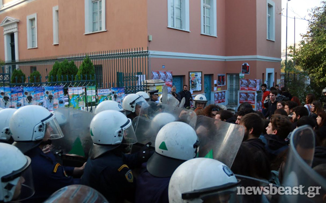 Οι φοιτητές θέλησαν να μπουν στη Σχολή και απωθήθηκαν από τις αστυνομικές δυνάμεις, που έκαναν χρήση χημικών. Αυτή τη στιγμή είναι κλειστή η Ακαδημίας, όπου έχουν συγκεντρωθεί φοιτητές, κρατώντας πανό που γράφει «Έξω η αστυνομία από το Πανεπιστήμιο-Παραίτηση Φορτσάκη τώρα-κάτω η κυβέρνηση».