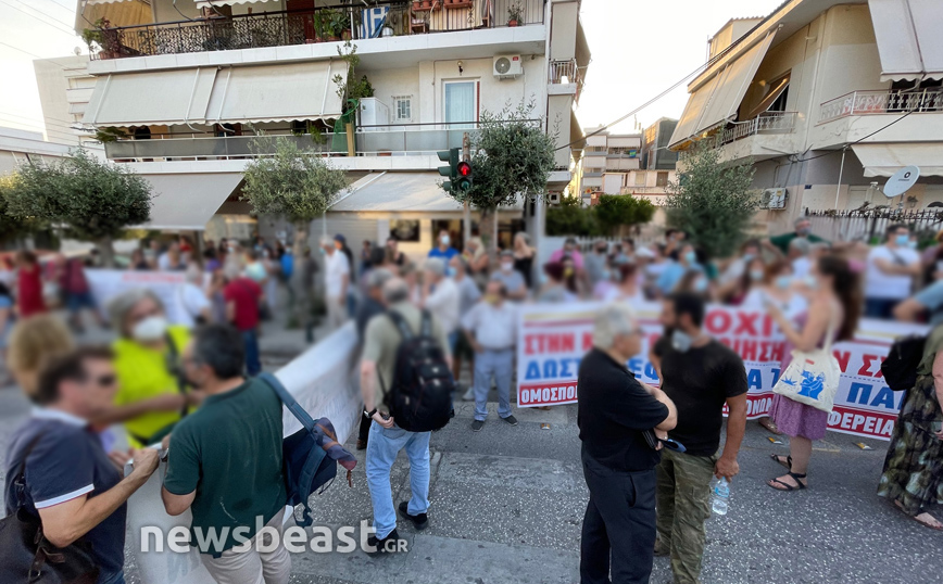 Συγκέντρωση διαμαρτυρίας έξω από το 1ο ΓΕΛ Αγίου Δημητρίου πραγματοποιούν το απόγευμα της Δευτέρας (28/6) σύλλογοι εκπαιδευτικών πρωτοβάθμιας εκπαίδευσης, γονείς και μαθητές αντιδρώντας στο νομοσχέδιο του υπουργείου Παιδείας που παρουσιάζεται εντός του σχολείου.