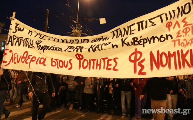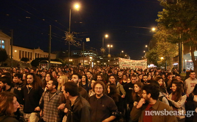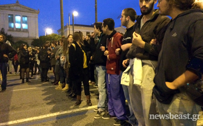 Κλειστή είναι αυτή την ώρα η Πανεπιστημίου από φοιτητές που ετοιμάζονται να πραγματοποιήσουν πορεία στο κέντρο της πρωτεύουσας, με κατεύθυνση την Ομόνοια και την πλατεία Συντάγματος, μετά τα επεισόδια που σημειώθηκαν το πρωί έξω από τη Νομική.