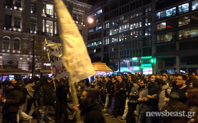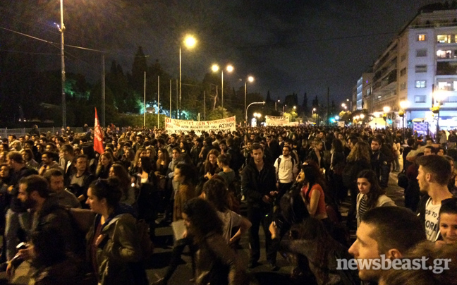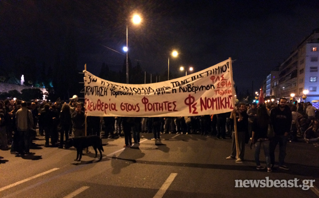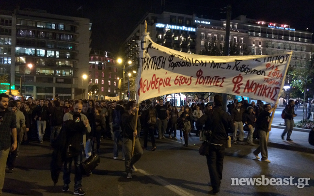Στην πλατεία Συντάγματος έχουν φτάσει οι φοιτητές που πραγματοποιούν πορεία διαμαρτυρίας στο κέντρο της Αθήνας.