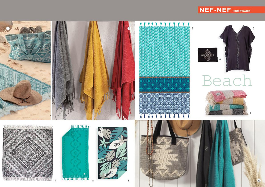 - Chief, Τσάντα θαλάσσης με ζακάρ σχέδιο από 100% βαμβάκι, 45×45, 33€. Nεσεσέρ θαλάσσης με ζακάρ σχέδιο 35×25, 18€. Scope, Πετσέτα θαλάσσης παρεό με κρόσια διπλής όψης (πετσετέ ύφασμα) 90×170, 25€. Expression, Πετσέτα θαλάσσης φροτέ με κρόσια από 100% βαμβάκι, 80×160, 22€