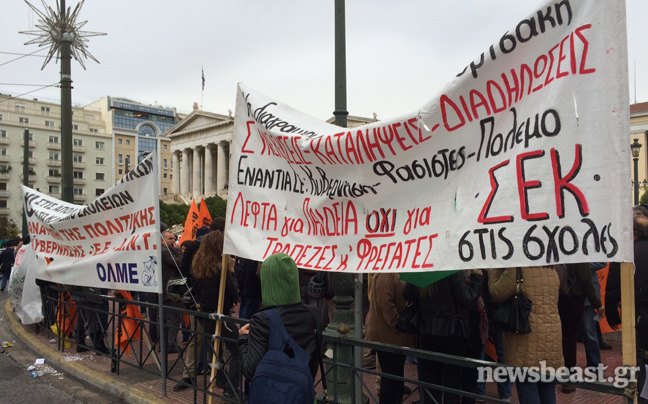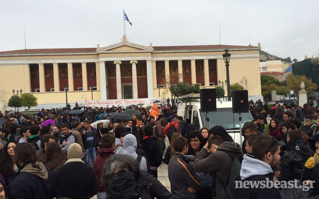Σε εξέλιξη, παρά τη βροχόπτωση, είναι το πανεκπαιδευτικό συλλαλητήριο που πραγματοποιείται αυτή την ώρα μπροστά από τα Προπύλαια, μετά τα χθεσινά επεισόδια που σημειώθηκαν στη Νομική Αθηνών.