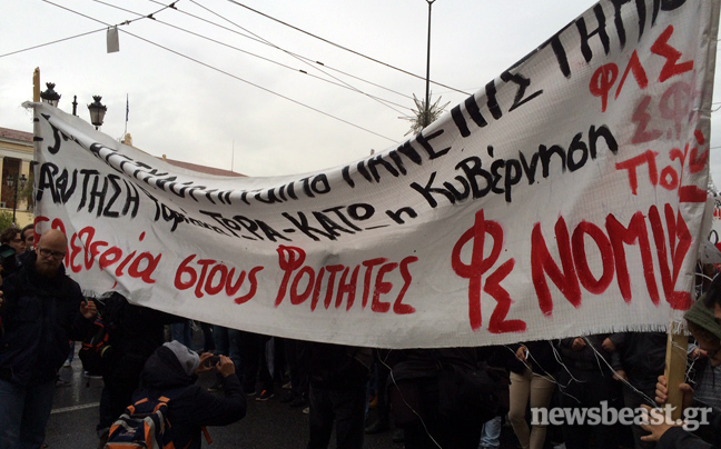 Από τα Προπύλαια στη Βουλή κατευθύνονται αυτή την ώρα με πορεία φοιτητές και εκπαιδευτικοί, που διαμαρτύρονται για τα χθεσινά επεισόδια στην Νομική, αλλά και στο ΕΜΠ.