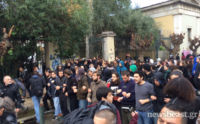 Οι φοιτητές μπήκαν από την είσοδο στην οδό Τοσίτσα, καθώς η είσοδος από την πλευρά της Στουρνάρη είχε αποκλειστεί από δυνάμεις των ΜΑΤ. Τα ΜΑΤ έκαναν αμέσως την εμφάνισή τους και στην Τοσίτσα, χωρίς ωστόσο να προκληθεί κάποια ένταση.