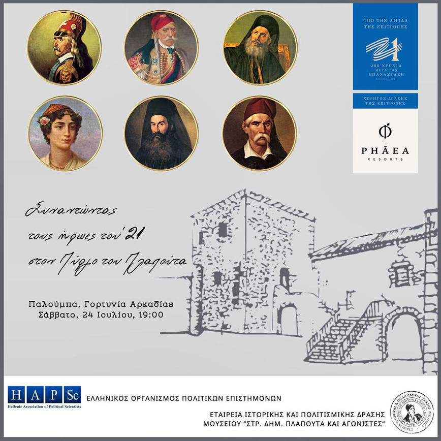 Επιστημονική Εκδήλωση «Συναντώντας τους ήρωες του ’21 στον Πύργο του Πλαπούτα», Επιτροπή «Ελλάδα 2021» – ΕΟΠΕ, 24 Ιουλίου 2021, Παλούμπα Γορτυνίας, Αρκαδία.