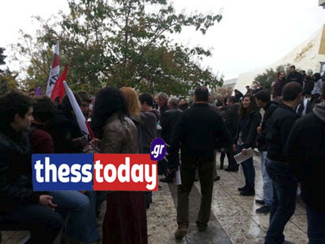Μια ομάδα φοιτητών αποδοκίμασε με συνθήματα τον πρύτανη του Πανεπιστημίου Μακεδονίας Αχιλλέα Ζαπράνη, όταν κατέθεσε στεφάνι.