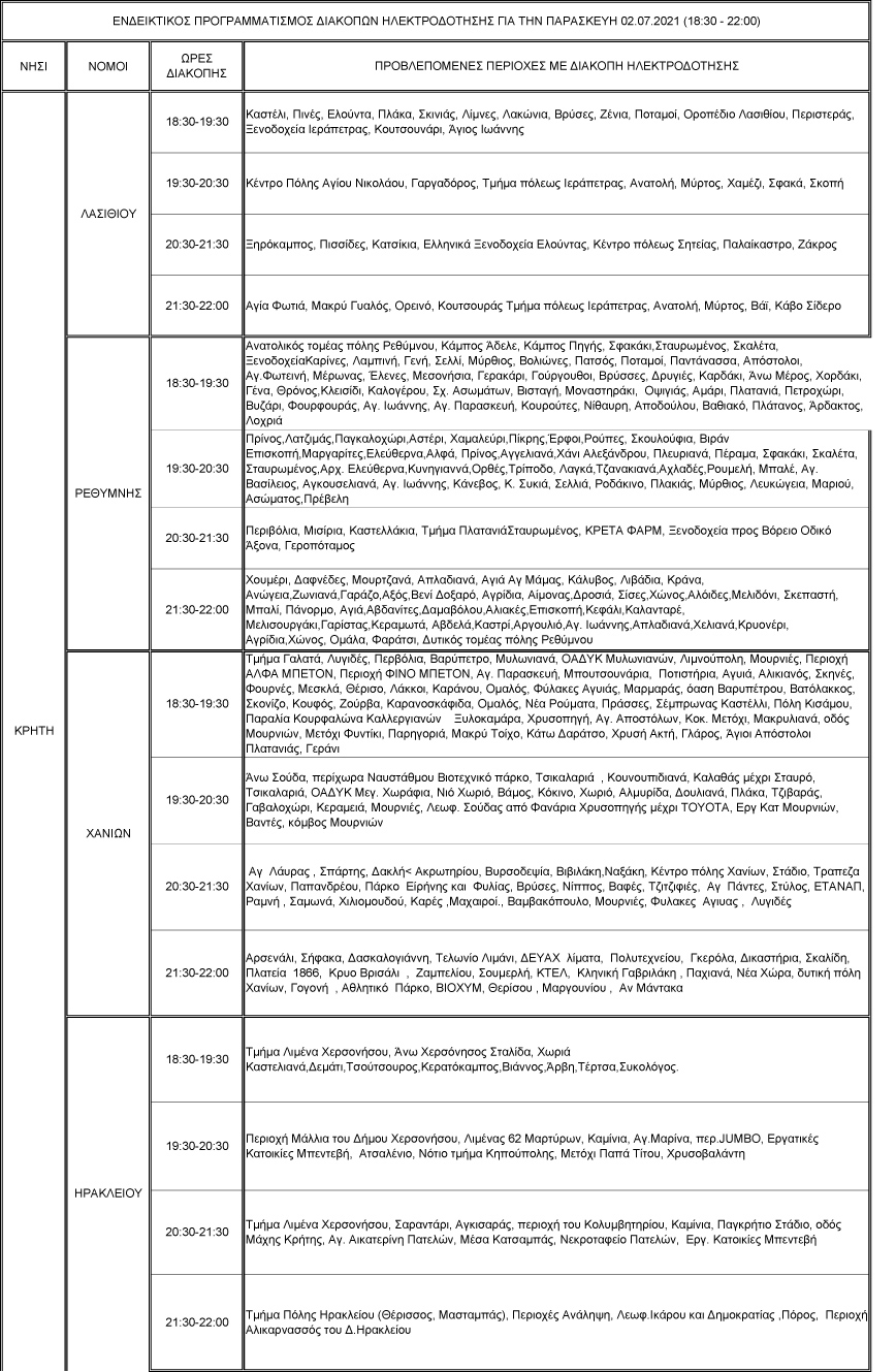 Παρακάτω μπορείτε να δείτε το νέο πρόγραμμα περικοπών στην ηλεκτροδότηση.