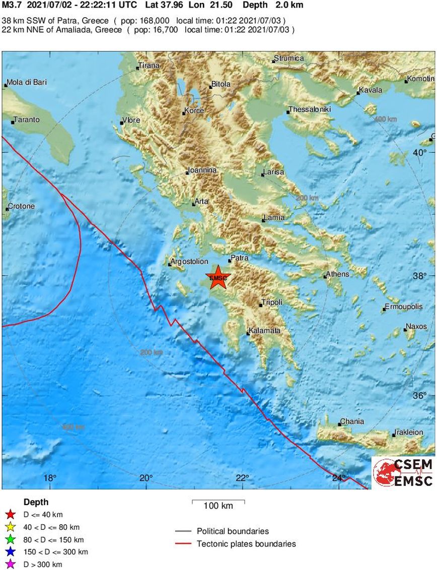 Ασθενής σεισμική δόνηση μεγέθους 3,7 βαθμών της κλίμακας Ρίχτερ σημειώθηκε πριν από λίγα λεπτά στην Αμαλιάδα.