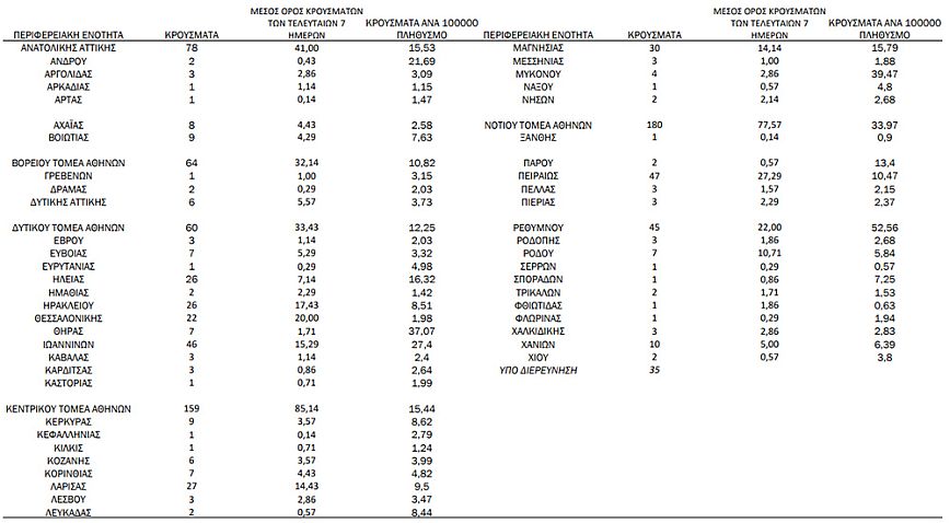 Αναλυτικά, η γεωγραφική κατανομή των σημερινών κρουσμάτων στην Αττική και στην υπόλοιπη Ελλάδα: