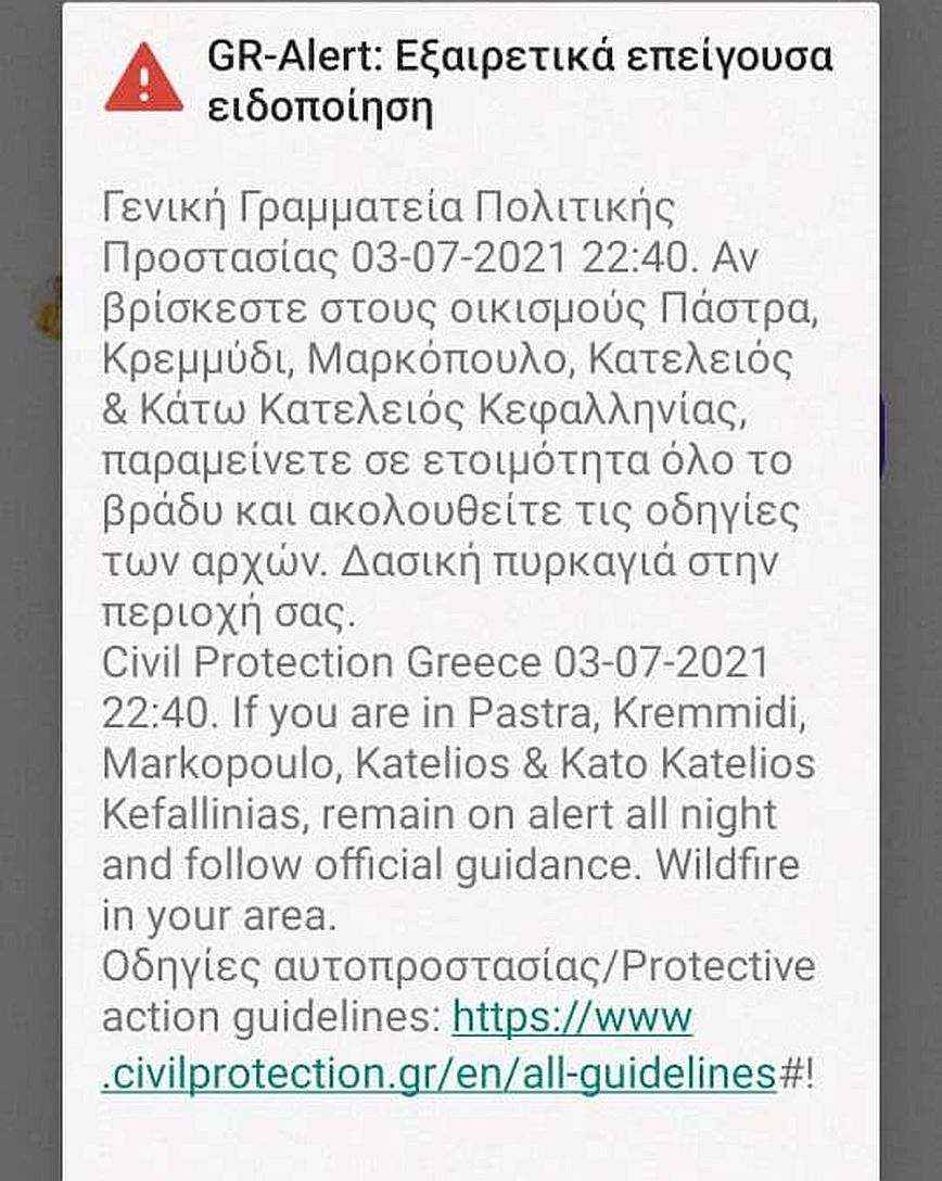 Μάλιστα, αργά το βράδυ του Σαββάτου ενεργοποιήθηκε και το 112 για πέντε οικισμούς. Πρόκειται για τους: Πάστρα, Κρεμμύδι, Μαρκόπουλο, Κατελειός και Κάτω Κατελειός Κεφαλληνίας.