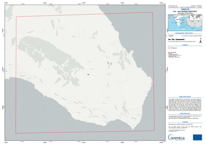 Το αίτημα σύμφωνα με τη σχετική ανακοίνωση έγινε αποδεκτό από την Ευρωπαϊκή Ένωση και αναμένεται άμεσα η διάθεση σειράς χαρτογραφικών δεδομένων και προϊόντων, που προκύπτουν από ανάλυση δορυφορικών εικόνων.