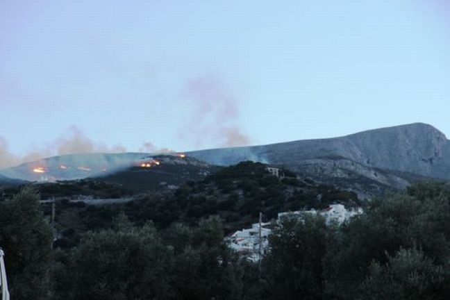 Η φωτιά σύμφωνα με το Πυροσβεστικό Κλιμάκιο Νάξου έχει εκδηλωθεί σε υψόμετρο περίπου 700 μέτρων και δεν κινδυνεύει κατοικημένη περιοχή.