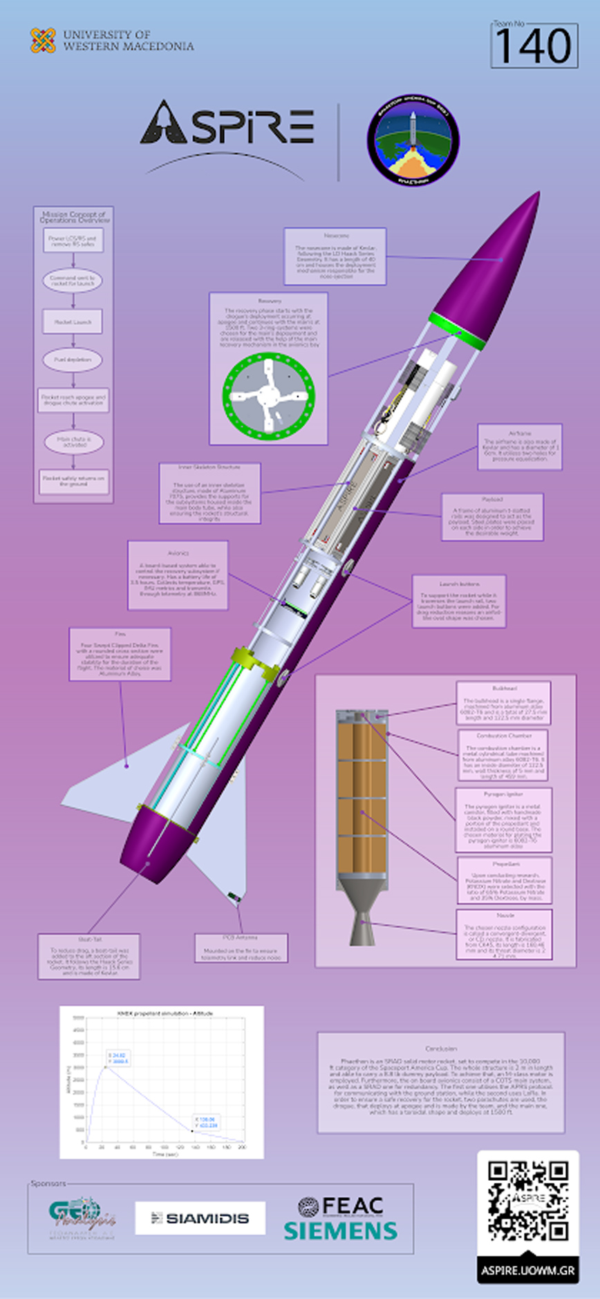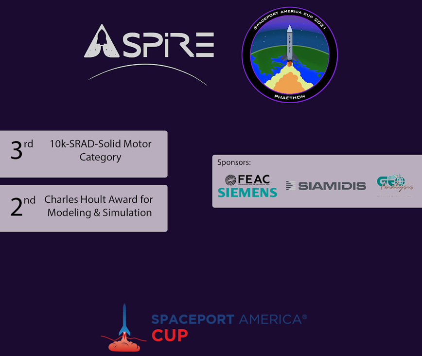 Για το γεγονός ότι η φοιτητική ομάδα αεροδιαστημικής σχεδίασε και κατασκεύασε με δικά της υλικά και τεχνογνωσία τον κινητήρα στερεών καυσίμων που μπορεί να ανεβάσει τον πύραυλο στα 10.000 πόδια (κατηγορία SRAD 10k Solid Motor), οι διοργανωτές τους βράβευσαν, δίνοντάς τους την 3η θέση στη γενική κατάταξη, αμέσως μετά το State University of New York at Buffalo και το George Washington University.