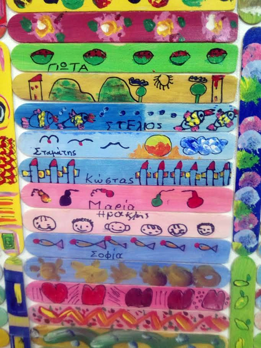 Η υπεύθυνη των Καλλιτεχνικών εργαστηρίων Αναστασία Σέμου εξήγησε πόσο σημαντική ήταν η ομαδική δουλειά για τη δημιουργία του πίνακα επισημαίνοντας πως επιλέχτηκαν τα ξυλάκια ως ιατρικό υλικό κι ότι το καθένα είναι ένα ξεχωριστό έργο, ενώ πάνω σε κάποια γλωσσοπίεστρα τα παιδιά έγραψαν και τα ονόματά τους.