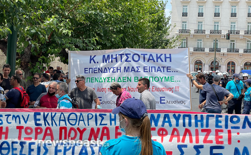 Κινητοποίηση στο κέντρο της Αθήνας πραγματοποιούν αυτή την ώρα εργαζόμενοι στα ναυπηγεία της Ελευσίνας.