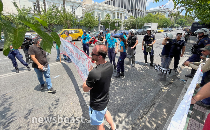 Οι συμμετέχοντες στη συγκέντρωση βρίσκονται επί της λεωφόρου Βασιλίσσης Σοφίας στο πλαϊνό τμήμα της Βουλής.