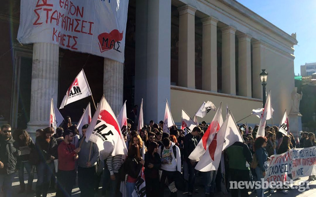 Συμβολική κατάληψη στο κτίριο της πρυτανείας του ΕΚΠΑ πραγματοποιεί αυτή την ώρα το Μέτωπο Αγώνα Σπουδαστών πραγματοποιεί.