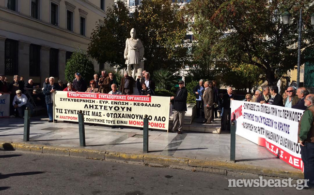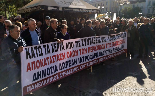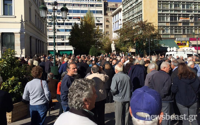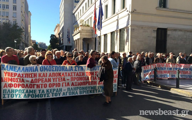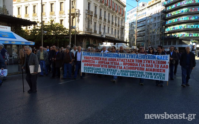 Κρατώντας πανό, πλακάτ και φωνάζοντας συνθήματα, οι συνταξιούχοι του ΙΚΑ – ΕΛΤΑ – ΔΗΜΟΣΙΟΥ – ΟΣΕ – OAEE- ΝΑΤ – ΟΤΑ – ΤΑΕΟΑΕΕ κατευθύνονται αυτή την ώρα με πορεία προς το υπουργείο Εργασίας.