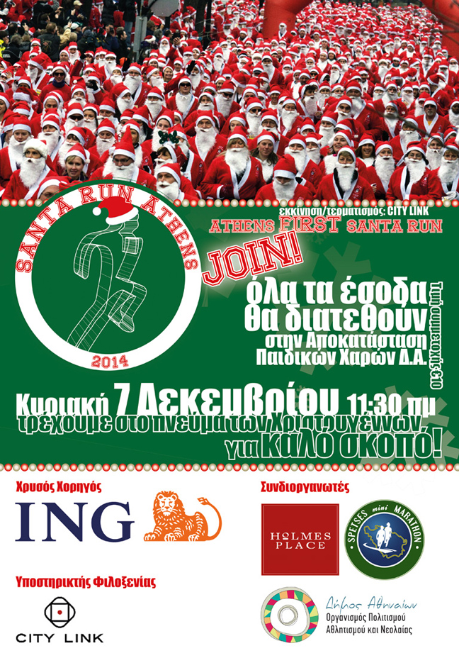 Την Κυριακή, 7 Δεκεμβρίου θα διεξαχθεί στο κέντρο της Αθήνας για πρώτη φορά το Santa Run, ο διεθνής θεσμός που έχει καθιερωθεί σε πλήθος μητροπόλεων παγκοσμίως με μεγάλη επιτυχία.