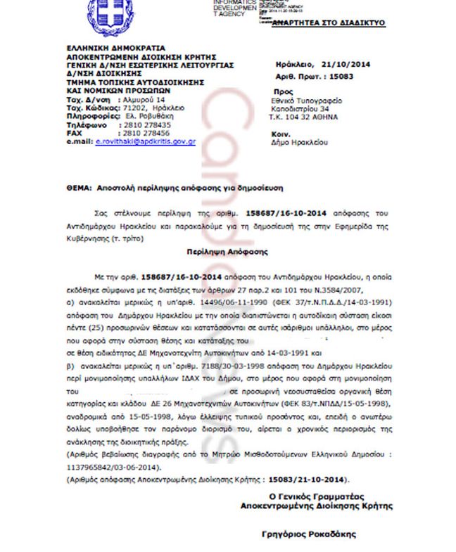 Δείτε την απόφαση απόλυσης, που έφερε στο φως της δημοσιότητας το candianews.gr