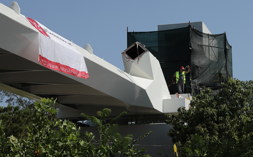 Ξεκίνησε η τοποθέτηση της 3ης πεζογέφυρας στη λεωφόρο Μεσογείων, στο ύψος του ΙΚΑ Αγ. Παρασκευής, από τις 6 συνολικά που θα εγκατασταθούν σε κεντρικούς οδικούς άξονες της Αττικής.