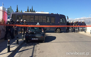 Στο σημείο βρίσκονται αστυνομικές δυνάμεις και 4 κλούβες.