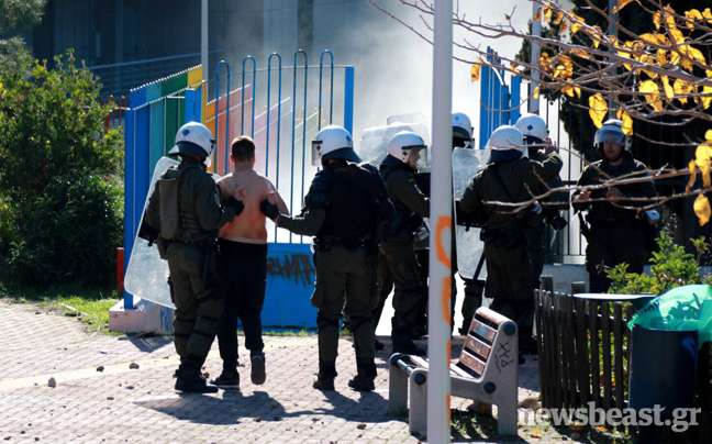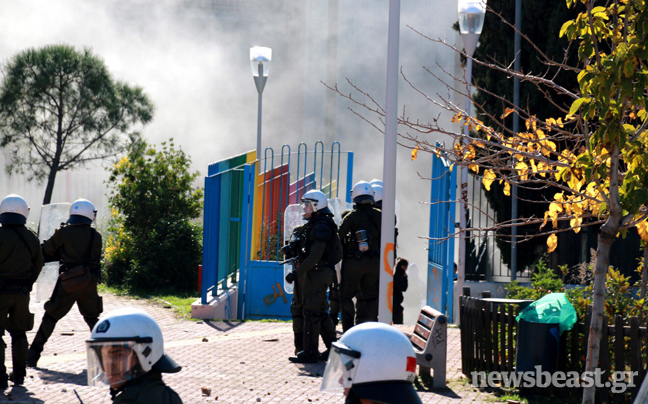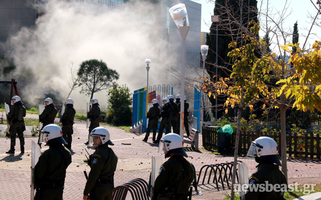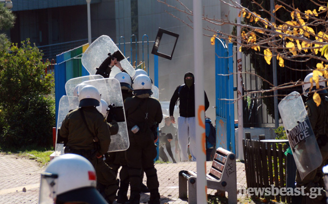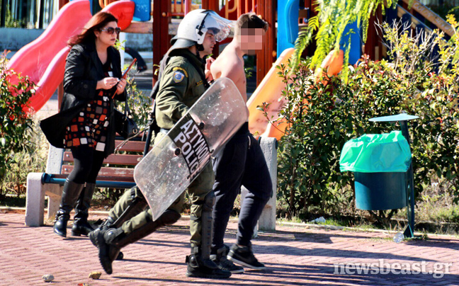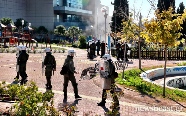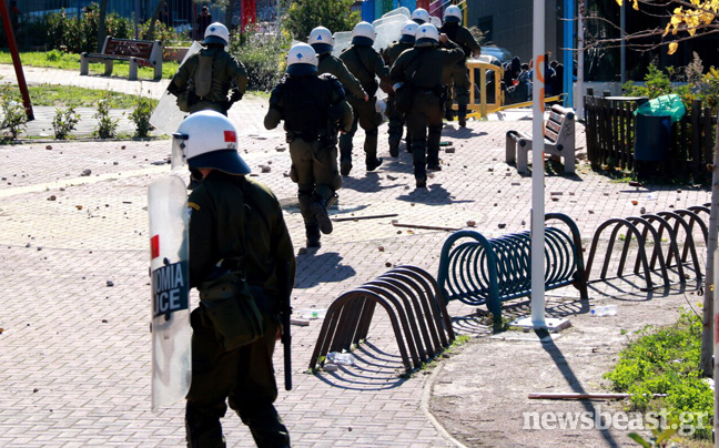 Διαδηλωτές πέταξαν αντικείμενα σε άνδρες των ΜΑΤ και μέσα στο πάρκο έκαναν την εμφάνισή τους δύο διμοιρίες, που προχώρησαν στη ρίψη κρότου λάμψης.