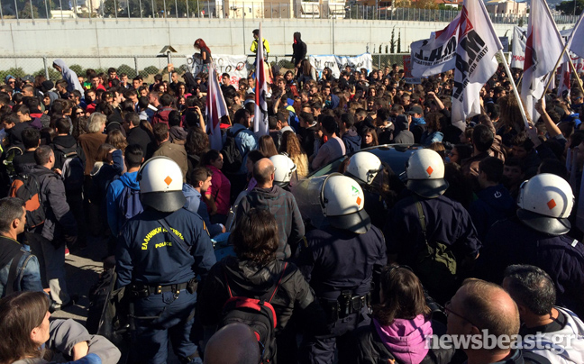 Σημειώνεται πως μαζί με τους μαθητές διαδηλώνουν στο σημείο φοιτητικοί σύλλογοι και μέλη του Μετώπου Σπουδαστών Αγώνα.