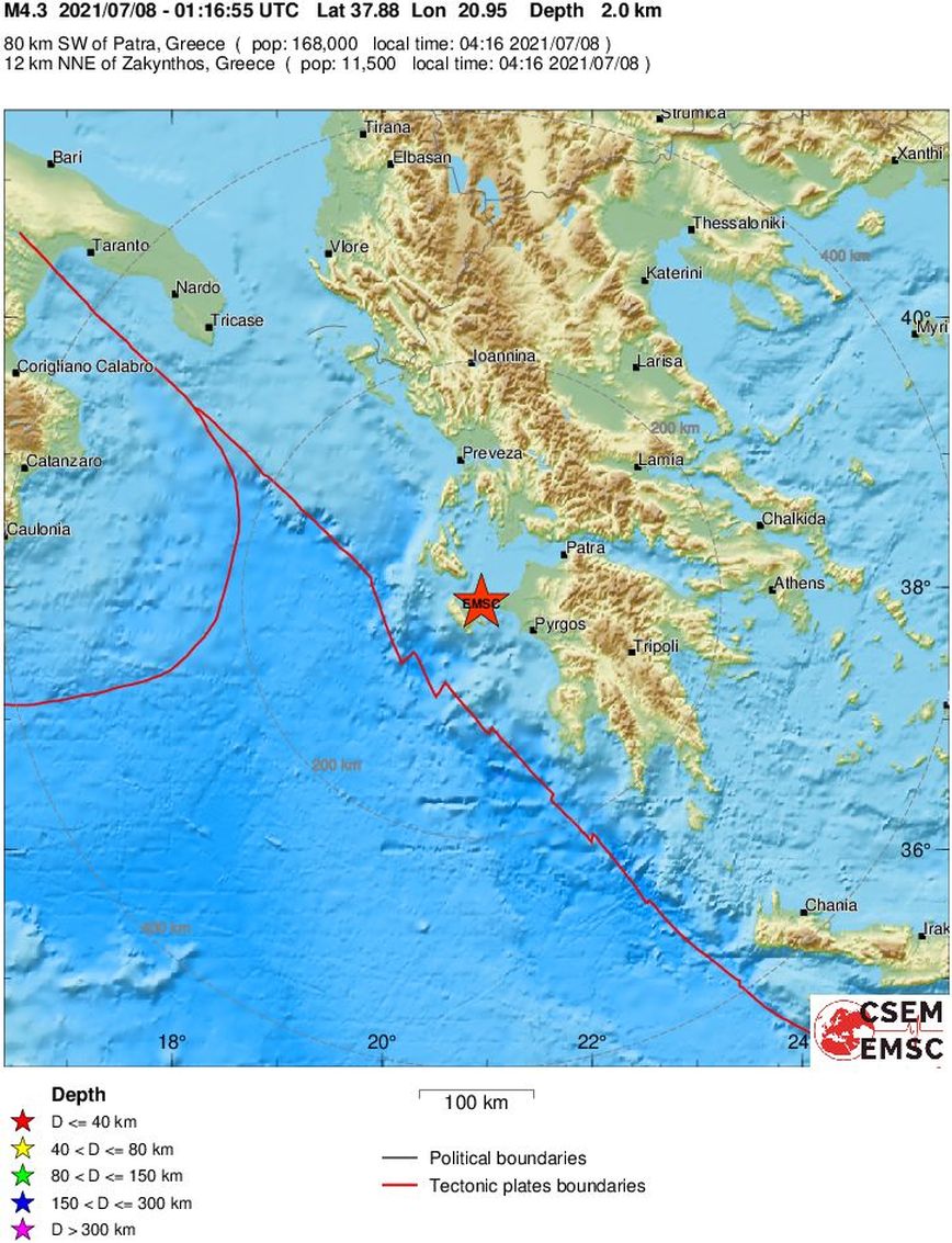 Σεισμική δόνηση μεγέθους 4,3 βαθμών της κλίμακας Ρίχτερ σημειώθηκε πριν από λίγα λεπτά στη Ζάκυνθο.