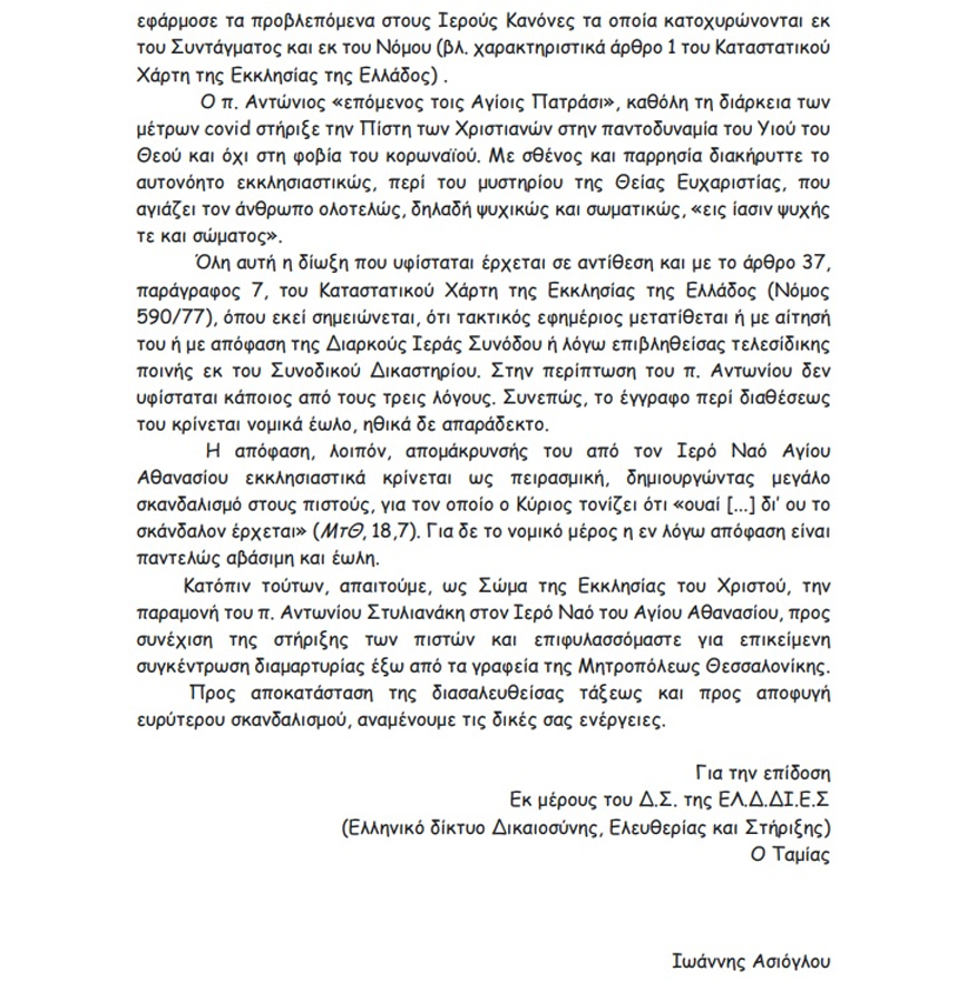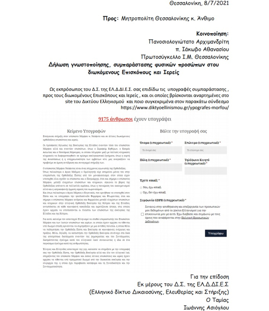 Δείτε την ανοιχτή επιτολή του «Δικτύου» προς τον Μητροπολίτη Άνθιμο: