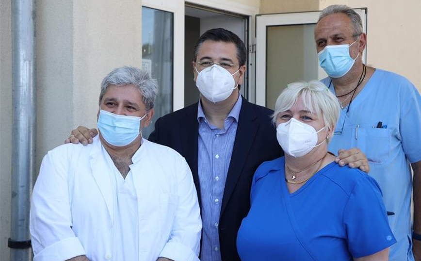 Επίσκεψη στο νοσοκομείο πραγματοποίησε το πρωί της Πέμπτης (8/7) ο περιφερειάρχης Κεντρικής Μακεδονίας Απόστολος Τζιτζικώστας, συνοδευόμενος από τον αντιπεριφερειάρχη Ημαθίας Κώστα Καλαϊτζίδη ενώ σε δηλώσεις του τόνισε ότι η Περιφέρεια χρηματοδότησε την κατασκευή δυο νέων πτερύγων στο νοσοκομείο. Σε μια απ’ αυτές λειτουργεί από σήμερα η νέα ΜΕΘ, ενώ μέχρι το τέλος της χρονιάς θα εγκαινιαστεί η πλήρης λειτουργία των δυο νέων πτερύγων του νοσηλευτικού ιδρύματος. «Για τις δυο νέες πτέρυγες του νοσοκομείου διασφαλίσαμε συνολικά 14,3 εκατ. ευρώ από ευρωπαϊκούς πόρους της Περιφέρειας Κεντρικής Μακεδονίας», πρόσθεσε.